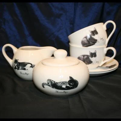 Franciens katten, 2 kop en schotel, suiker en melk, krieltje