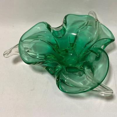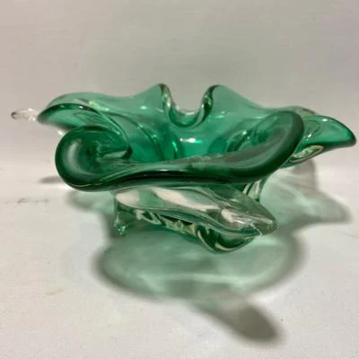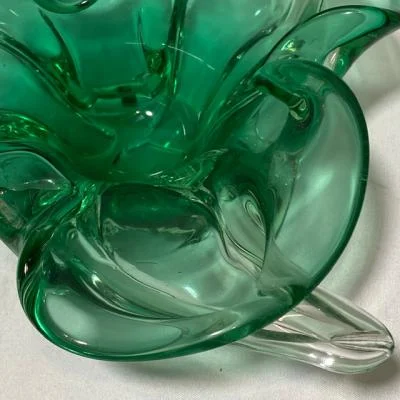 Groene glazen schaal – vintage