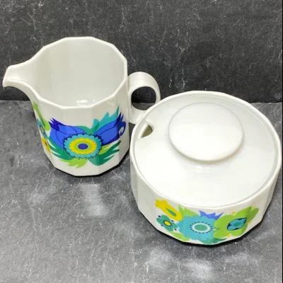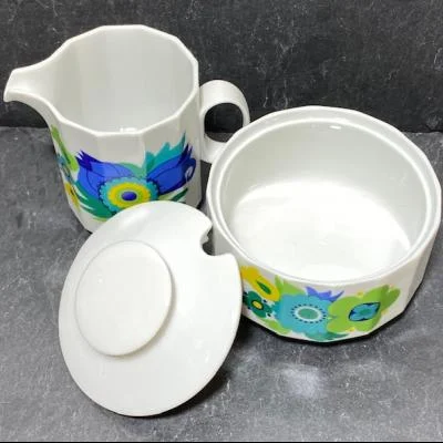 Rosenthal Polygon, Blue, Green, Yellow Floral Center – suiker en melk