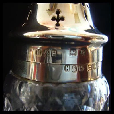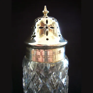 Zilveren suikerstrooier Engels zilver met glas Gemerkt Birmingham 1928 17cm hoog
